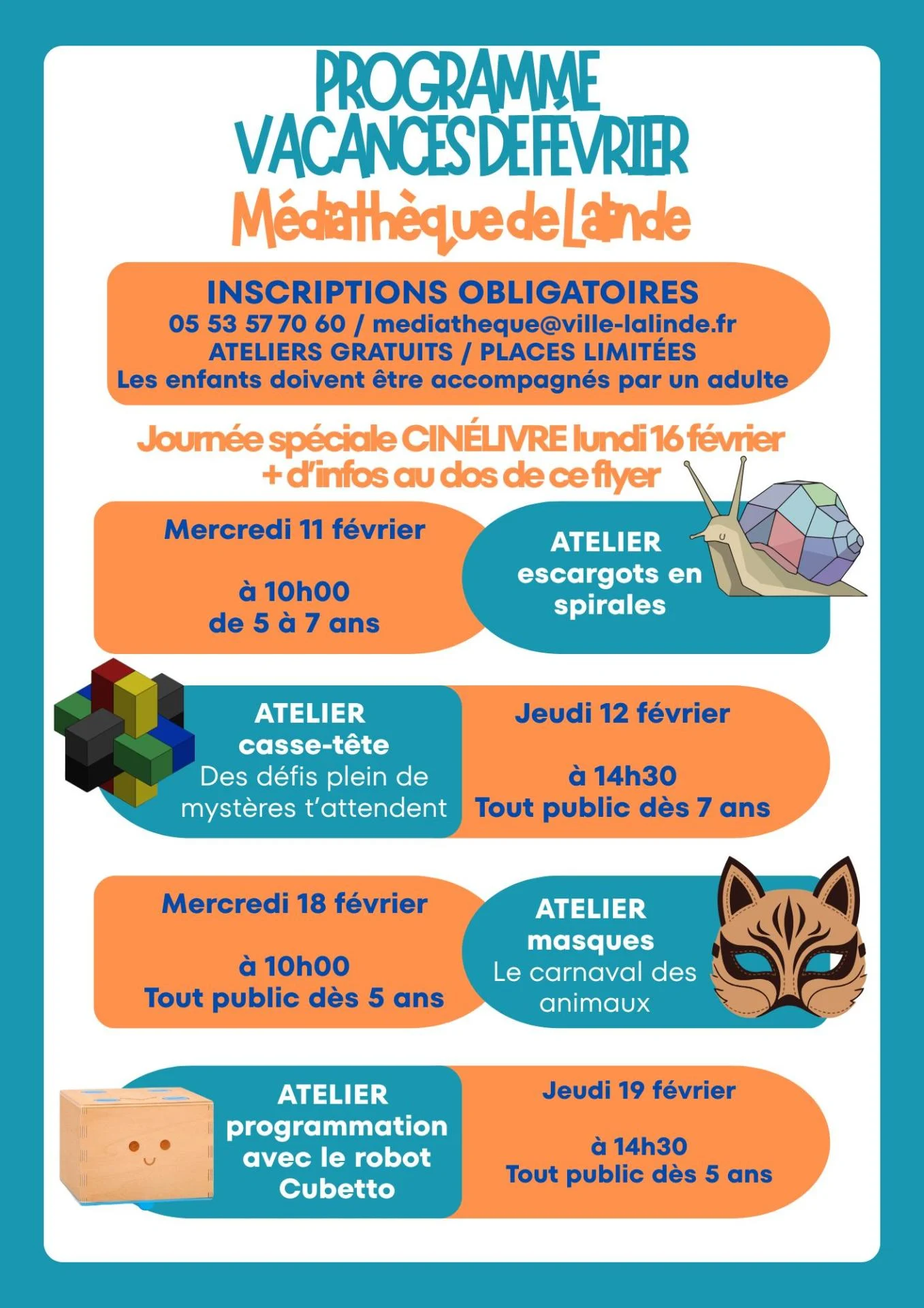 RASSUREZ-VOUS ! Vous pourrez aussi consulter le programme de la médiathèque sur le site Internet de la mairie via l'agenda et sur l'application mobile gratuite "PanneauPocket".
